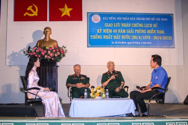 Giao lưu với các nhân chứng lịch sử trong chiến dịch Hồ Chí Minh tại hội trường Đài. Ảnh: Khiêm Huân