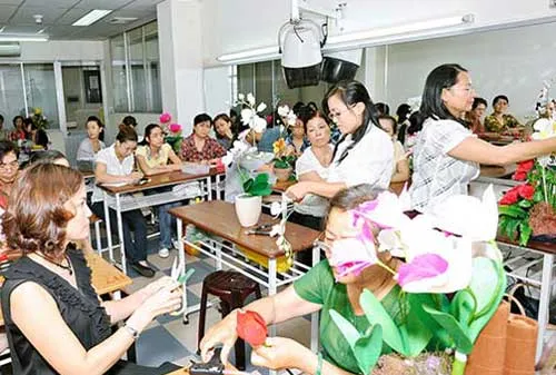Lớp học làm hoa giả tại Nhà văn hóa Phụ nữ TPHCM luôn thu hút đông chị em tham gia. Ảnh: cohoi