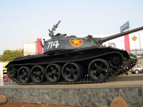 Chiếc xe tăng 714 đầu tiên tiến vào giải phóng thị xã Long Khánh. Ảnh: Lệ Loan