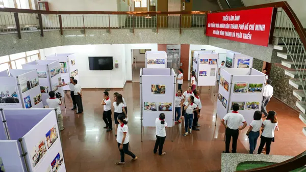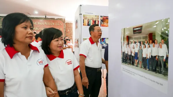 Cán bộ, công nhân viên chức Đài VOH tham quan triểm lãm ảnh.