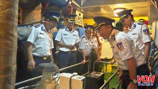 Thiếu tướng Phan thanh Minh Kiểm tra công tác bảo quản trang bị may móc trên tàu CSB 4031