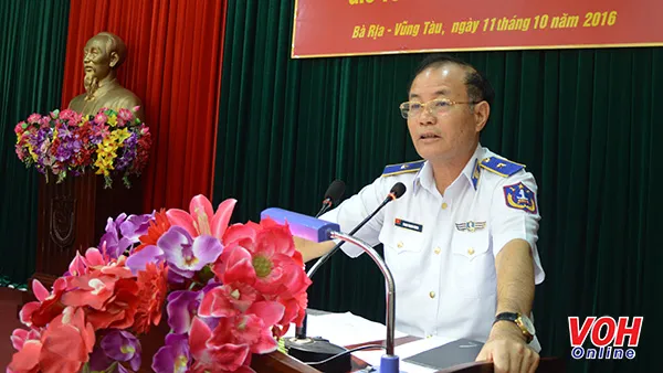Thiếu tướng Phan Thanh Minh Phó Tư lệnh Cảnh sát biển phát biểu tại khai mach hội thi tàu tốt BTL Vùng CSB 3
