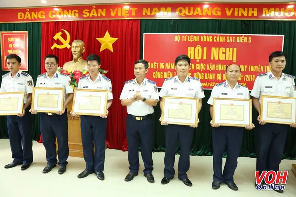 Nhân dịp này, Bộ Tư lệnh Vùng Cảnh sát biển 3 đã tặng Giấy khen cho 4 tập thể và 3 cá nhân có thành tích xuất sắc trong 5 năm thực hiện Cuộc vận động “Phát huy truyền thống, cống hiến tài năng, xứng danh Bộ đội Cụ Hồ”, học tập và làm theo tư tưởng, đạo đức, phong cách Hồ Chí Minh.