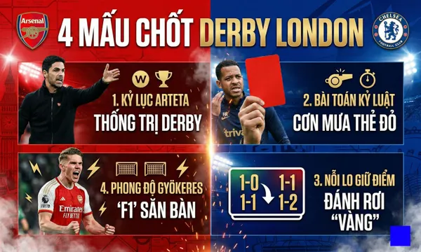 Sự thống trị đó thậm chí còn rõ nét hơn trong những mùa giải gần đây. Arsenal chỉ để thua duy nhất 1 trong 25 trận derby London gần nhất tại Ngoại hạng Anh (thắng 18, hòa 6). Kể từ chiến dịch 2022-2023, Pháo thủ cũng đã ghi bàn trong 42/44 trận derby.