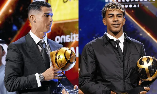 Tài năng thuộc biến chế Barcelona, Lamine Yamal cũng gây ấn tượng trong buổi lễ trao giải với cú đúp giải thưởng Diego Armando Maradona, dành cho ngôi sao tấn công nổi bật cùng Tiền đạo xuất sắc nhất.
