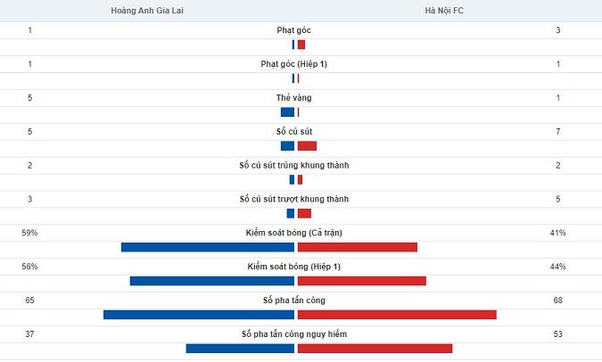 Có bàn dẫn trước, các học trò của HLV Kiatisak chủ động chơi phòng ngự chặt, phản công nhanh khiến đối thủ gặp nhiều khó khăn. Trong khi ấy, Hà Nội chủ yếu dựa vào những quả tạt từ cánh trái và các cú sút xa. Tuy nhiên, những cơ hội lần lượt trôi qua chân các chân sút phía đội khách trong hiệp 1.