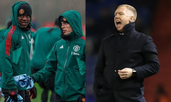 Ống kính máy quay đã bắt lại các khoảnh khắc của Kobbie Mainoo và Alejandro Garnacho. Bộ đôi cầu thủ trẻ dầm mưa trên sân tập, nhưng trang phục tập luyện của họ lại khiến đàn anh Paul Scholes cảm thấy không hài lòng.