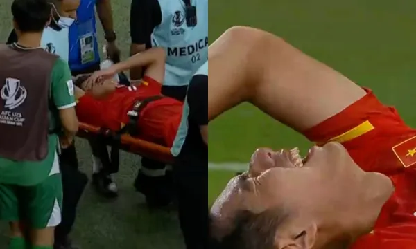 Trong nỗ lực tranh bóng với Xiang Yuwang phía "Đội tuyển Rồng", thủ lĩnh hàng phòng ngự U23 Việt Nam đã dính chấn thương nặng và ngã xuống sân đau đớn.