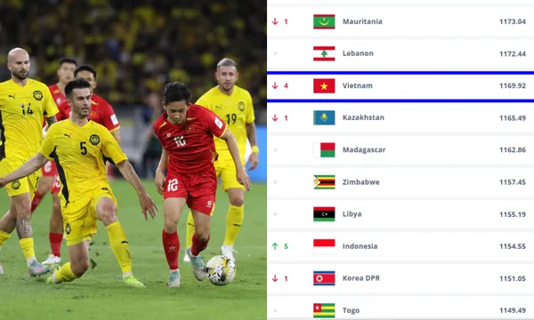 Bảng xếp hạng mới nhất vừa được Liên đoàn bóng đá thế giới (FIFA) cập nhật chứng kiến bước lùi lớn của đội tuyển Việt Nam. "Những chiến binh sao vàng" bị trừ đến 13.91 điểm và tụt 4 bậc, rơi xuống vị trí thứ 113 thế giới.