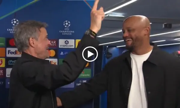 HLV Luis Enrique chủ động tiến đến hỏi đồng nghiệp Vincent Kompany: "Cậu đã xem trận đấu trên khán đài. Cậu có thích không?". Thuyền trưởng "Hùm xám" liền cười trả lời: "Không đâu" đối với HLV "Les Parisiens".