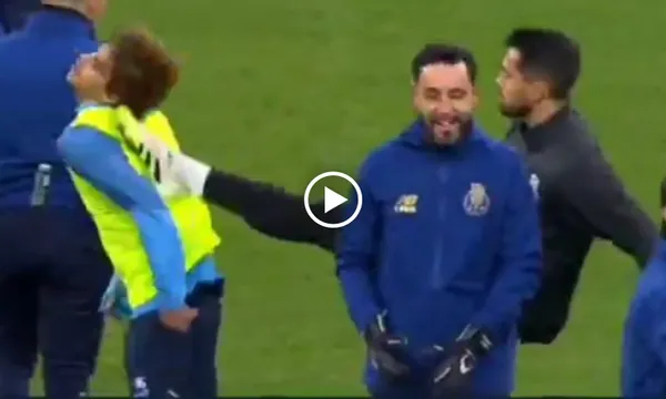 Giữa buổi tập, ống kính máy quay ghi lại khoảnh khắc bất ngờ. Thủ môn Diogo Costa đã đá mạnh vào lưng tài năng 18 tuổi Rodrigo Mora, khiến nhiều đồng đội xung quanh lẫn CĐV trên khán đài sững sờ.