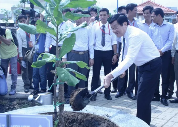 Chủ tịch nước Trương Tấn Sang trồng cây lưu niệm tại công viên ven Kênh Tân Hóa – Lò Gốm