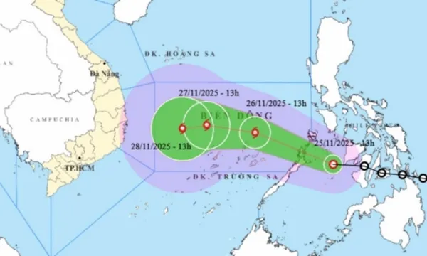 Theo Trung tâm Dự báo khí tượng thủy văn quốc gia, lúc 13h ngày 25-11, tâm áp thấp nhiệt đới đang ở khu vực miền trung Philippines, với sức gió mạnh nhất vùng gần tâm đạt cấp 7 (50-61km/h), giật cấp 9.