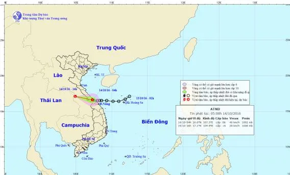 Hồi 04 giờ, vị trí tâm áp thấp nhiệt đới ở vào khoảng 16,6 độ Vĩ Bắc; 107,3 độ Kinh Đông, trên khu vực tỉnh Thừa Thiên Huế. Sức gió mạnh nhất ở vùng gần tâm áp thấp nhiệt đới mạnh cấp 6 (40-50km/giờ), giật cấp 7-8.
