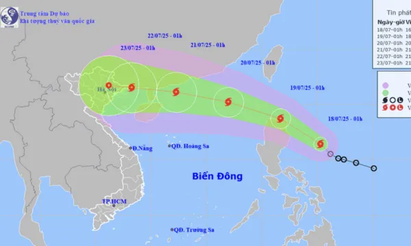 Trong ngày và đêm mai (19/7), bão di chuyển nhanh theo hướng tây tây bắc với tốc độ 20-25km/h, có khả năng đi vào Biển Đông và cường độ tiếp tục mạnh thêm. Nhiều khả năng đây sẽ là cơn bão số 3 trong năm 2025.