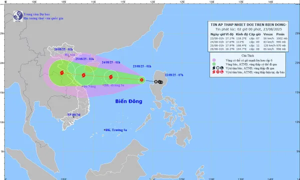 Lúc 01 giờ ngày 23/8, vị trí tâm áp thấp nhiệt đới ở khoảng 17,1 độ Vĩ Bắc; 118,2 độ Kinh Đông, cách đặc khu Hoàng Sa khoảng 730 km về phía Đông. Sức gió mạnh nhất cấp 7 (50 – 61 km/h), giật cấp 9. Dự báo áp thấp nhiệt đới di chuyển theo hướng Tây Tây Bắc với tốc độ khoảng 25 km/h.
