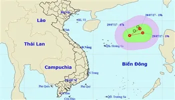 Trong 12 đến 24 giờ tiếp theo, áp thấp nhiệt đới đổi hướng di chuyển theo hướng Đông Đông Bắc, mỗi giờ đi được 10km, đến 01 giờ ngày 30/07, vị trí tâm áp thấp nhiệt đới ở vào khoảng 18,8 độ Vĩ Bắc; 117,8 độ Kinh Đông, cách quần đảo Hoàng Sa khoảng 660km về phía Đông Đông Bắc. Sức gió mạnh nhất ở vùng gần tâm áp thấp nhiệt đới mạnh cấp 6 (40-50km/giờ), giật cấp 8-9.