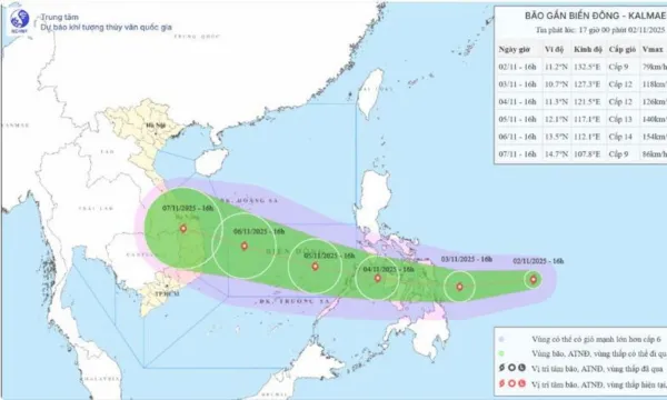Dự báo của cơ quan khí tượng Việt Nam cho thấy khoảng ngày 5/11, bão Kalmaegi đi vào Biển Đông.