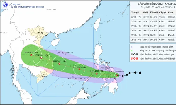 Ông Nguyễn Thượng Hiển lưu ý, bão Kalmaegi có thể gây dông, lốc trước bão và mưa lớn diện rộng từ đêm 6/11 đến 9/11 tại Quảng Trị đến Đắk Lắk, kéo theo nguy cơ xuất hiện đợt lũ mới trên các sông từ Quảng Trị đến Khánh Hòa.