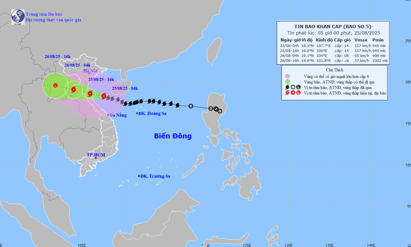 Không chỉ gió mạnh, mưa lớn cũng được cảnh báo trên diện rộng. Trong hai ngày 25-26/8, khu vực Trung du và đồng bằng Bắc Bộ, Lào Cai, Thanh Hóa - Huế có mưa 100-150 mm, cục bộ trên 250 mm. Đặc biệt, khu vực từ Thanh Hóa đến Bắc Quảng Trị có mưa rất to 200-400 mm, nơi cao nhất có thể trên 700 mm. Riêng Quảng Bình, Quảng Trị ghi nhận lượng mưa cực đoan, có nơi vượt 200 mm chỉ trong 3 giờ.