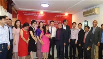 Đại biểu Việt Nam-Campuchia chụp hình cùng các nhà báo Campuchia.
