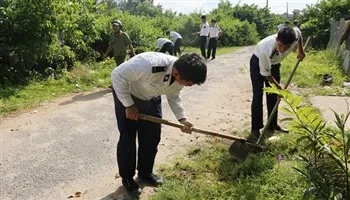 Cán bộ, chiến sỹ BTL Vùng Cảnh sát biên 3 tham gia vệ sinh đường làng, thôn xóm
