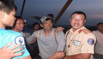 Sau hơn 1 giờ thuyết phục không thành, 1 CSGT và 1 cảnh sát PCCC đã bất ngờ khống chế, đưa nam thanh niên an toàn khỏi thành cầu Rạch Miễu.