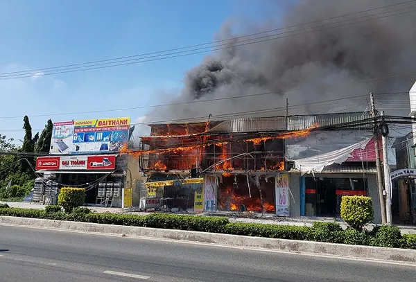 Ngọn lửa bùng phát rất mạnh tại quán cơm gà Út Hường của ông Đỗ Văn Chính (số 845 Trần Hưng Đạo) và cơ sở màn cửa, sàn gỗ của bà Lê Thị Siêng (số 847 Trần Hưng Đạo), thiêu rụi hoàn toàn 2 cơ sở kinh doanh này.