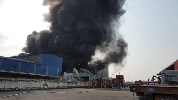 Cho đến 8 giờ 30 ngày 18/5, ngọn lửa vẫn tiếp tục bùng lên dữ dội. Lực lượng chữa cháy đang tích cực dập tắt đám cháy và vận chuyển hàng hóa, trang thiết bị ra khỏi các kho hàng.
