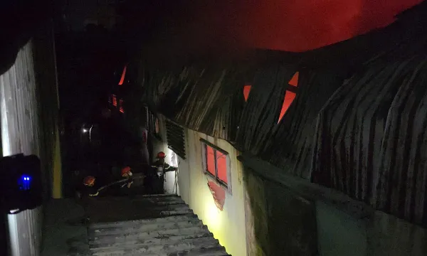 Đến 2h sáng lính cứu hỏa vẫn phá tường thoát khói, kéo vòi rồng phun nước dập lửa. Bên trong còn đỏ rực, sức nóng làm mái tôn uốn cong.