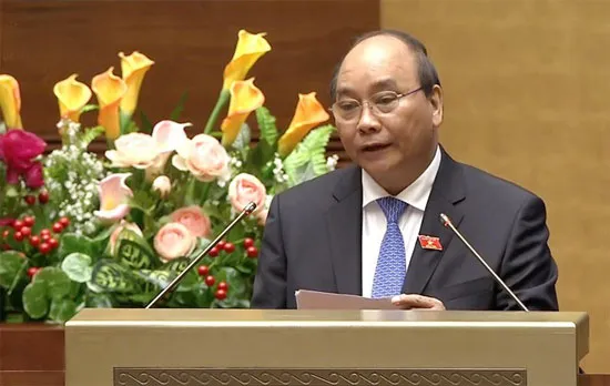 Phó Thủ tướng Nguyễn Xuân Phúc báo cáo với Quốc hội. Ảnh: Zing