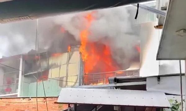 Lửa sau đó tiếp tục cháy lan sang căn nhà liền kề khiến tầng 3 của căn nhà này cũng bùng cháy dữ dội, làm gia tăng nguy cơ cháy dây chuyền trong khu vực nhà ở san sát.