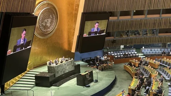 Với tư cách Phó Chủ tịch Đại hội đồng Liên hợp quốc, Đại sứ Đặng Hoàng Giang, Trưởng Phái đoàn đại diện thường trực Việt Nam tại Liên hợp quốc, chủ trì phiên thảo luận và thông qua Nghị quyết.