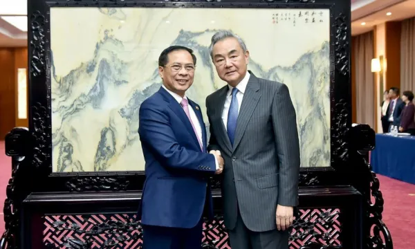 Tại cuộc hội đàm với Bộ trưởng Ngoại giao Trung Quốc Vương Nghị, hai bên trao đổi lời thăm hỏi của lãnh đạo cấp cao và bày tỏ vui mừng trước những thành tựu phát triển của mỗi nước.
