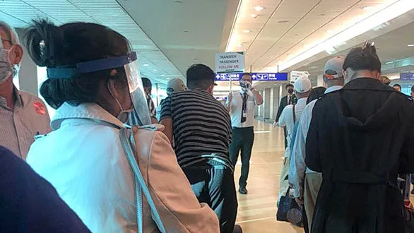 Khách đến sân bay Đài Loan được giám sát y tế rất kỹ (ảnh chụp trên chặng bay từ Việt Nam quá cảnh tại sân bay Đài Bắc ngày 12/7) - Ảnh: TTO