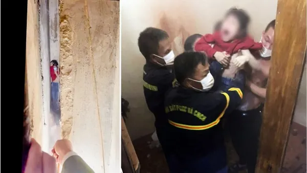 Cứu bé 9 tuổi kẹt trong khe hẹp 25cm - giữa 2 căn nhà