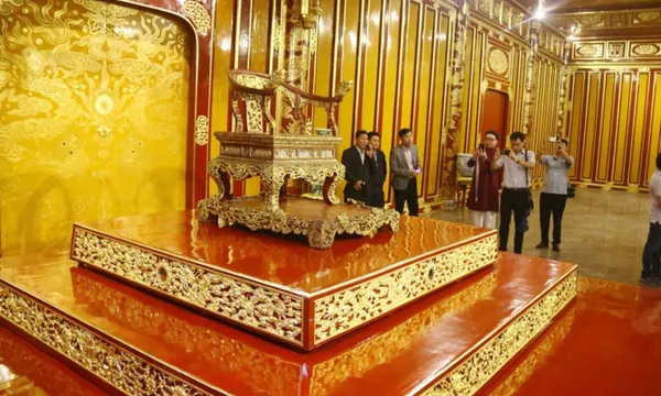 Du khách nước ngoài bẻ gãy ngai vàng triều Nguyễn tại điện Thái Hòa