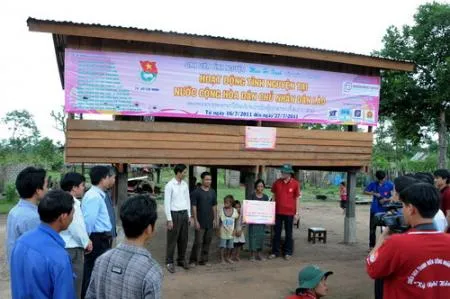 | Trao tặng nhà hữu nghị “Tuổi trẻ Việt - Lào” cho các hộ gia đình khó khăn tại huyện Sanxay, tỉnh Attapeu. |