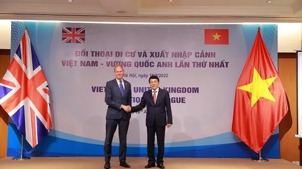Sáng nay 15/8/2022, Quốc vụ khanh Bộ Nội vụ Vương quốc Anh Matthew Rycroft và Thứ trưởng Bộ Công an Việt Nam, Thượng tướng Lương Tam Quang đã đồng chủ trì Đối thoại Di cư và Xuất nhập cảnh Vương quốc Anh – Việt Nam lần thứ nhất. Đối thoại nhằm mục đích cải thiện hợp tác di cư, phát huy tiềm năng của mối quan hệ đối tác di cư hiện có và thảo luận các vấn đề chính, trong đó có bốn trụ cột: Truyền thông về xuất nhập cảnh và di cư an toàn; Hồi hương; Vấn đề giả mạo giấy tờ và chính sách mới về xuất nhập cảnh; Phòng, chống mua bán người.