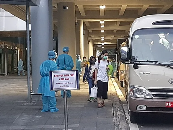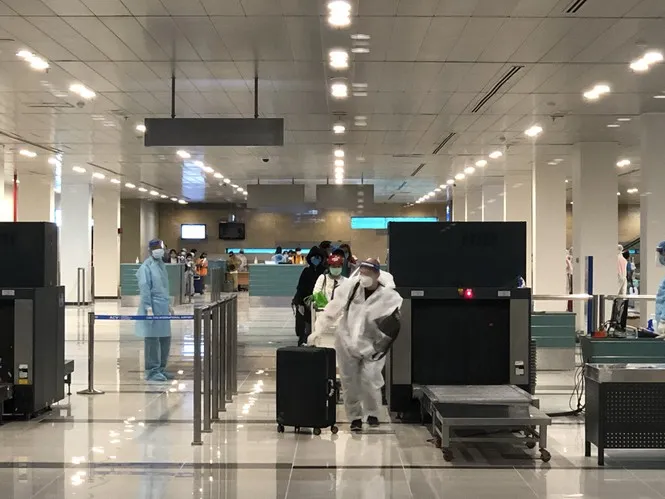 Ngay sau khi xuống sân bay Cần Thơ, tất cả hành khách được kiểm tra y tế, đo thân nhiệt và thực hiện tất cả các thủ tục cần thiết trước khi lên xe đón về khu cách ly tập trung.