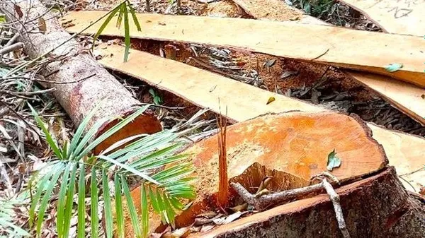 Qua kiểm kê, hiện trường có 35 cây gỗ bời lời, 7 cây gỗ ké, 1 cây trám trắng và 9 cây gỗ chưa xác định được chủng loại bị cưa hạ. Các thân gỗ bị cưa xẻ lấy gỗ trái phép, đường kính gốc từ 26-80cm.