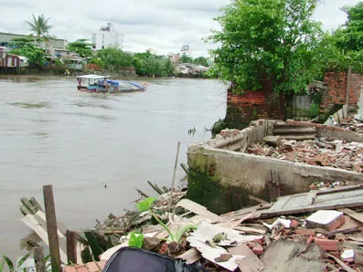 Khu đường Sông Tp đã có dự án đầu tư xây dựng bờ kè cho 2 khu vực này nhưng lại bị vướng công tác giải phóng mặt bằng chỉ vì huyện Nhà Bè còn chờ điều chỉnh lại đơn giá bồi thường hộ dân theo hướng dẫn mới, còn quận Bình Thạnh đến giờ chưa được ghi vốn giải phóng mặt bằng để bồi thường hộ dân.