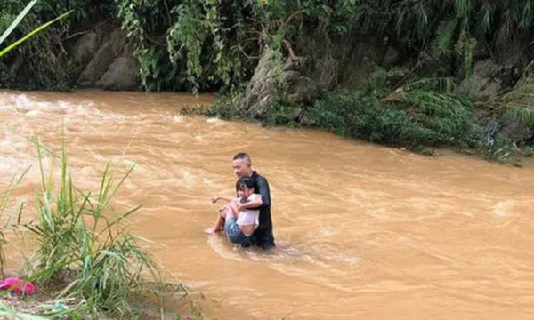 Thấy bé O. chới với dưới dòng suối chảy xiết, anh Cường và anh Kiên (ở xã An Thịnh, huyện Văn Yên) đã bất chấp nguy hiểm, lao xuống dòng nước lũ để ứng cứu nạn nhân.