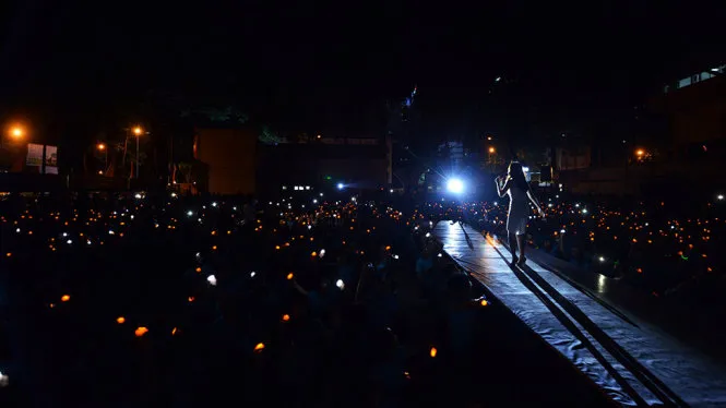 Đúng thời khắc 20 giờ 30 phút, Ban tổ chức nhấn nút phát động sự kiện tắt đèn một giờ. Ánh đèn điện sáng choang ngay phút trước chợt tắt, nhường lại cho ánh “nến điện tử” bằng đèn LED lung linh trong bóng đêm phát ra từ tay ngàn bạn trẻ.