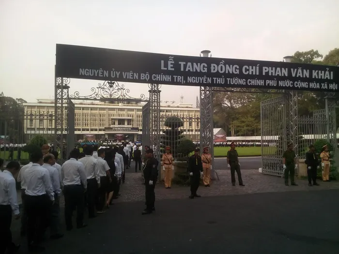 Theo TTO, từ hơn 40 phút trước giờ lễ truy điệu, dòng người đã xếp hàng nối nhau vào dự lễ truy điệu cố Thủ tướng. Từ 6h30, những đoàn khách đầu tiên đã tới chờ vào dự lễ. Đến 6h55, hàng ngàn người đã tập trung chỉnh tề ở sân trước hội trường.
