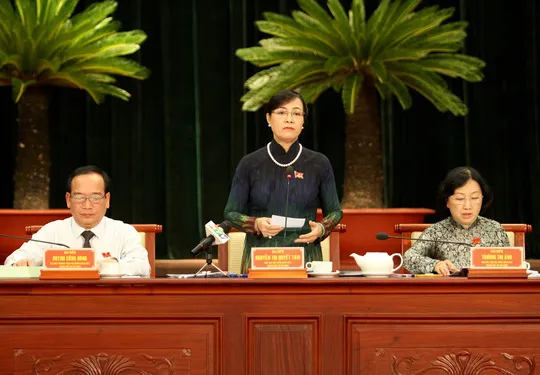 Chủ tịch HĐND TP Nguyễn Thị Quyết Tâm phát biểu đề dẫn buổi thảo luận - Ảnh: NLĐ.