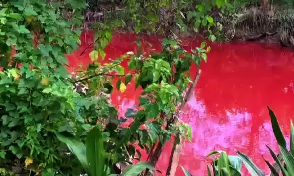 Ngày 5/10, người dân sống ven rạch Bàu Giai Sâu (ấp Thái Hòa, xã An Thái Đông) phản ảnh nước rạch có màu đỏ, ảnh hưởng đến môi trường khu vực.