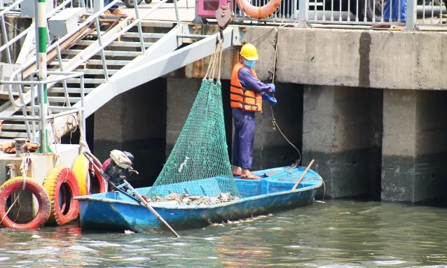 Lực lượng chức năng tiến hành vớt cá chết trên kênh Nhiêu Lộc – Thị Nghè