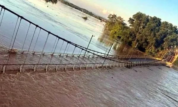 Theo ghi nhận, tại khu vực cầu Hà Châu (Thái Nguyên), mực nước lũ đã dâng sát mặt cầu, nhiều vị trí nước tràn lên mặt đường.