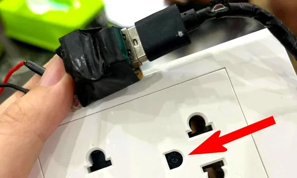 Phát hiện bất thường, họ đã cậy nắp ổ điện và phát hiện camera vẫn đang hoạt động.
